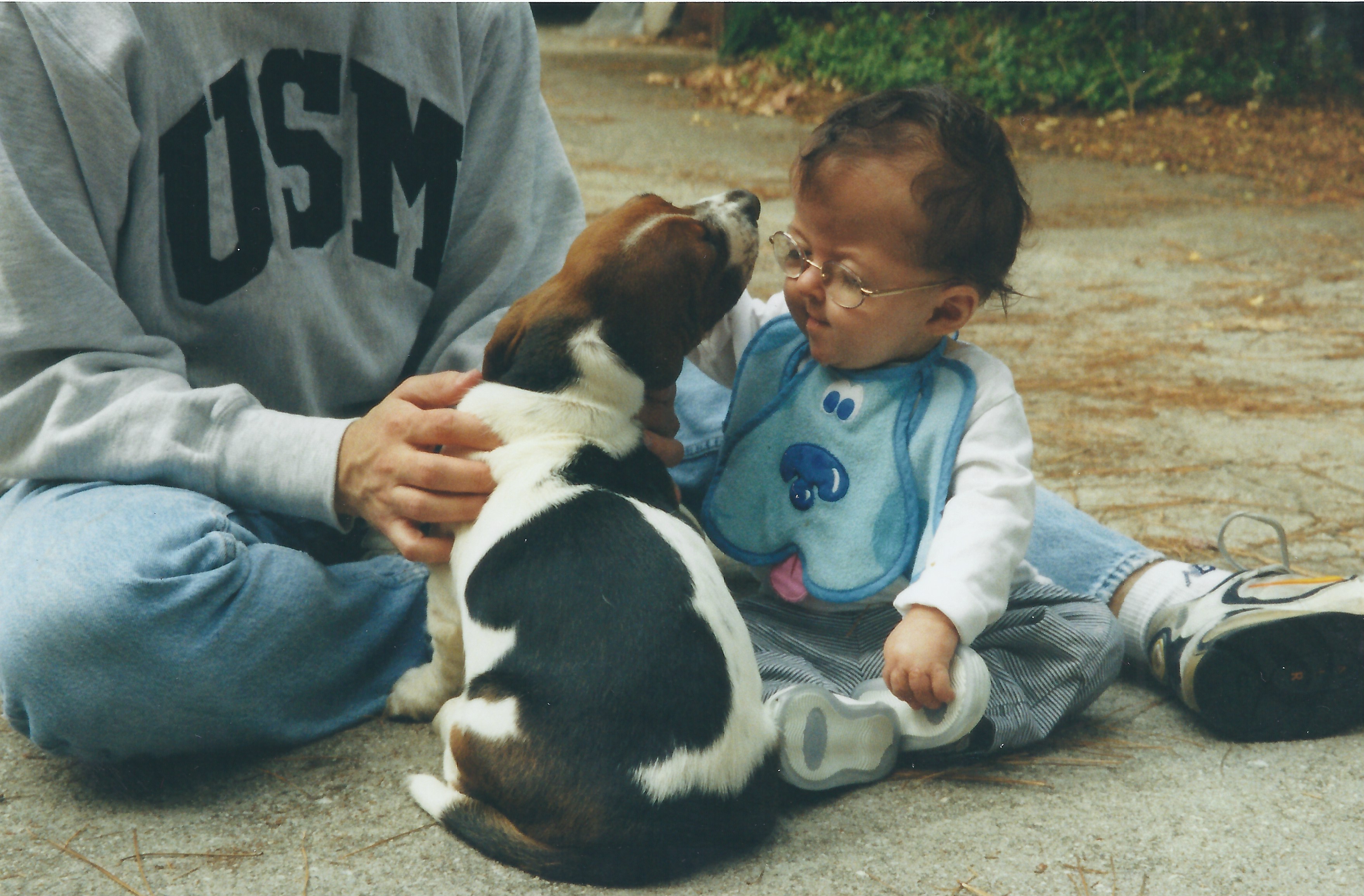 With a Basset hound puppy when I was one. Photo Credit: Stacey Wertz